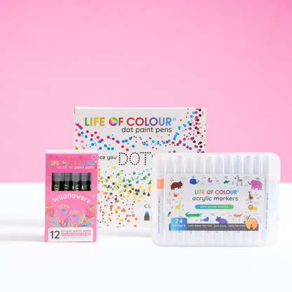 Playful art tools. Both kids and adults will have hours of fun making art on any surface. Add colour to anything with Life of Colour Paint Pens!
