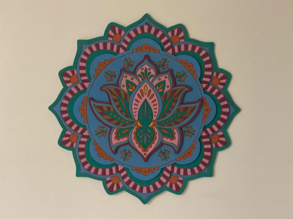 This is one of my best creations i absolutely love the Lotus and what it represents and being able to colour a lotus mandala was great it will hang with pride in my home