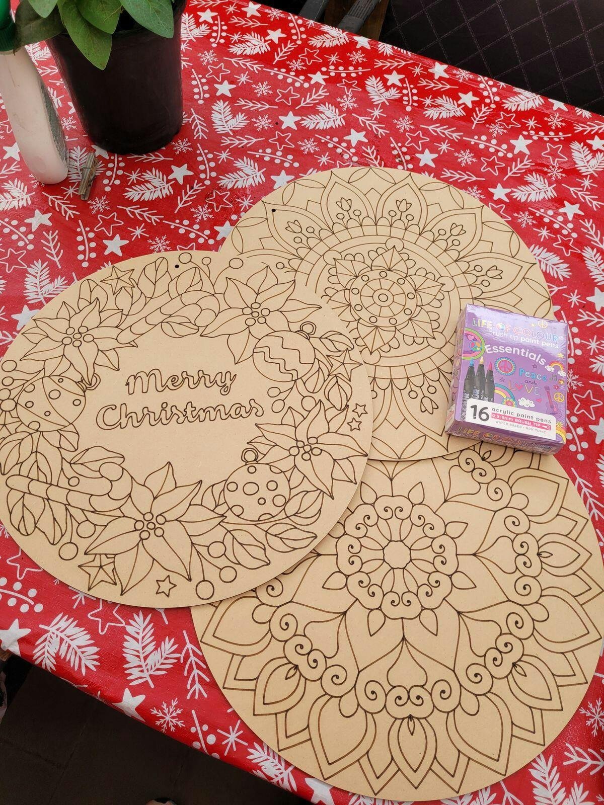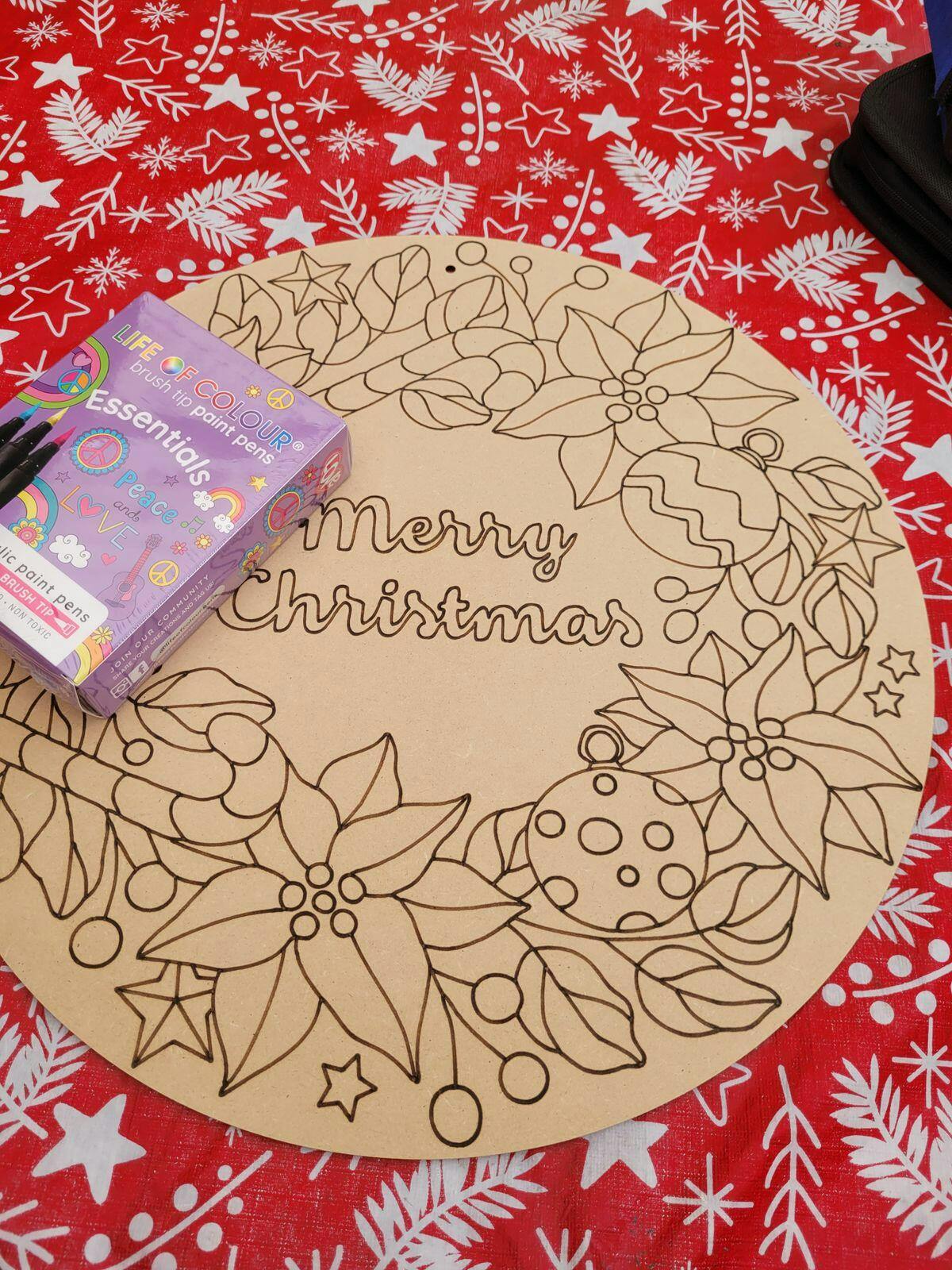 🎄 Festive Wreath Delight: Embrace the holiday spirit with our 40cm Christmas Wreath Board and 2 Mandalas, which you can colour . Engraved with intricate lines, these stunning canvases allow you to add your own colourful touch and create a personalized wreath that captures the magic of Christmas.