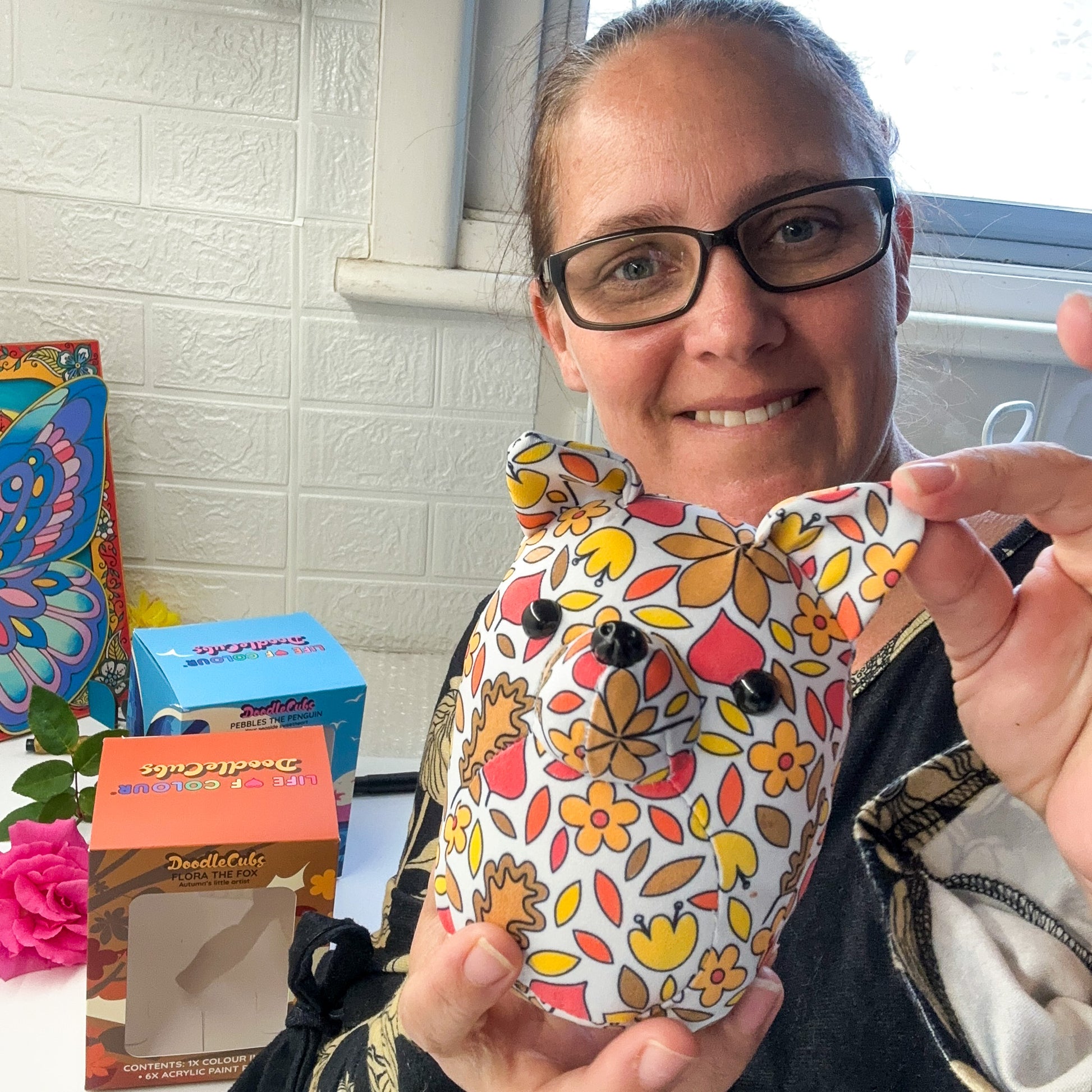 Meet Flora the Fox, Autumn’s little artist from our Doodlecubs Collection. With her coat of leafy patterns and blooming florals, Flora brings the cosy magic of fall wherever she goes. Curious, clever, and always chasing colour, she’s the perfect creative companion for a crisp afternoon of colouring and calm.
