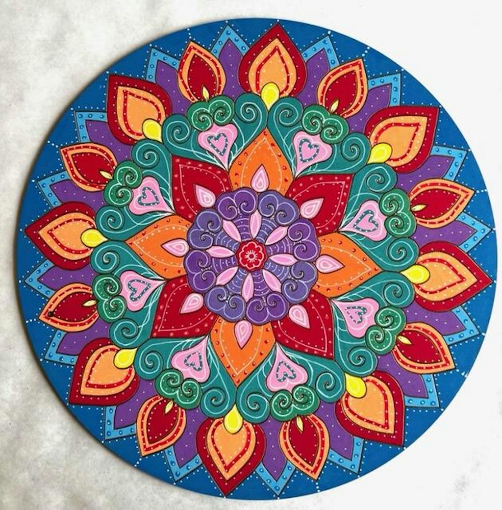 The VIVID paint pens are as advertised - bright and colorful. They were an excellent choice with this simpler mandala. Second photo is the same mandala embellished with white.
