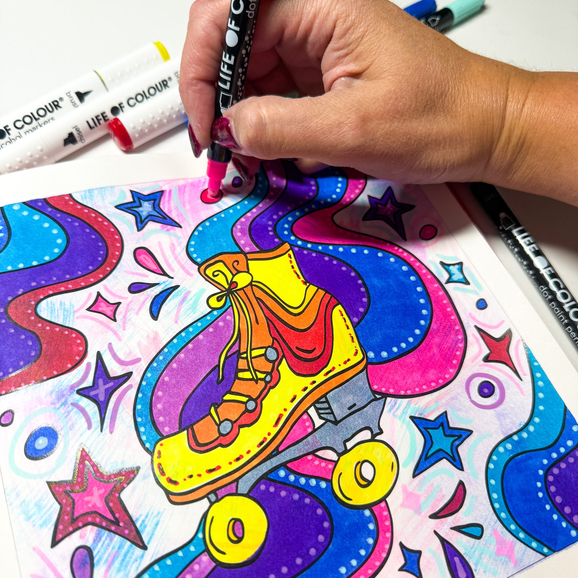 Printed on 180gsm bleed-proof paper with perforated edges, every page can be removed to frame, share, or gift. Paired with Life of Colour Art Markers, you’ll enjoy vibrant blends, smooth colouring, and the freedom to add your own details.