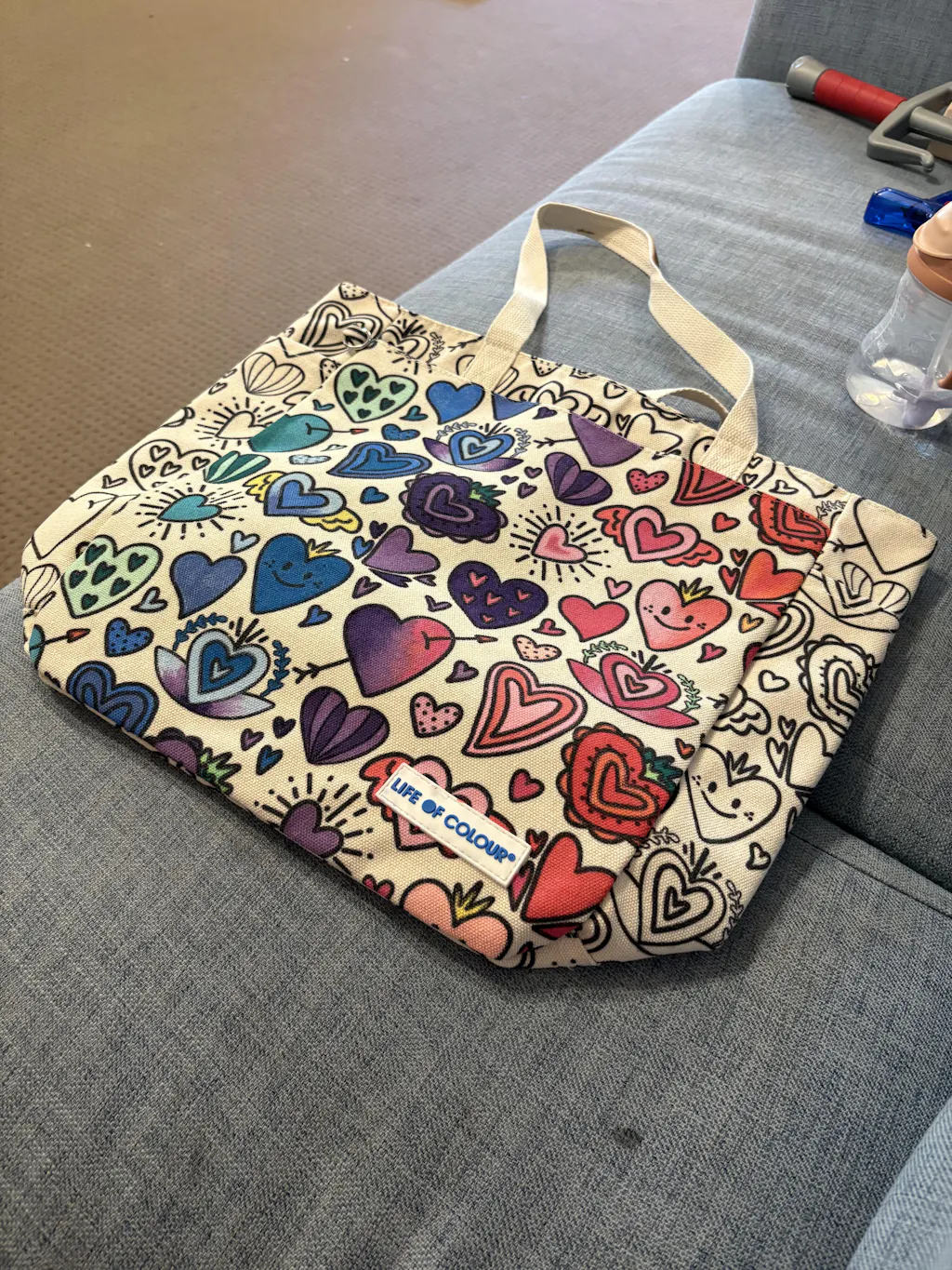 • 1 Large Luxury Canvas Tote Bag with Love Heart design outlines for colouring