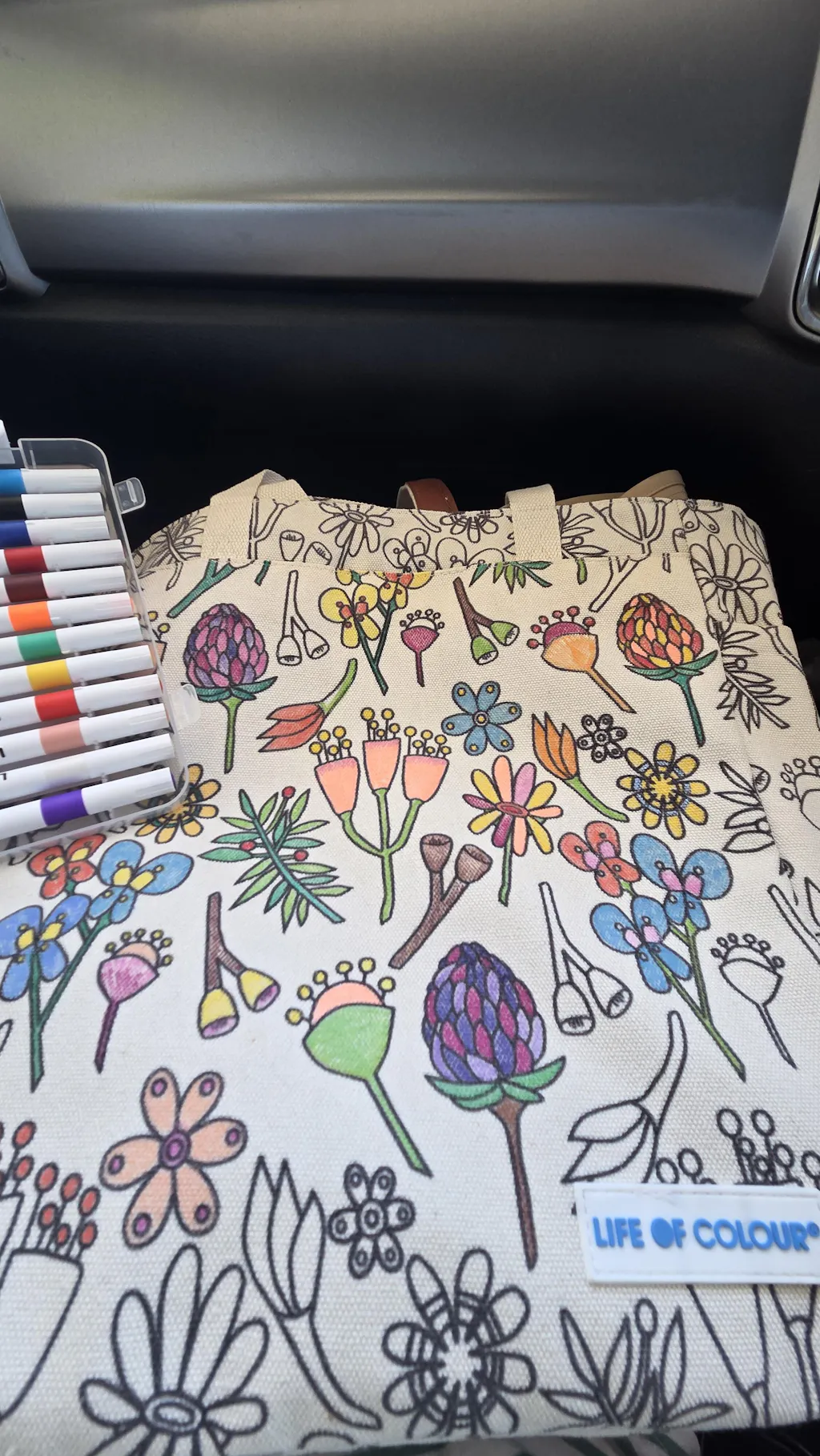• 1 Large Luxury Canvas Tote Bag with Wildflower design outlines for colouring