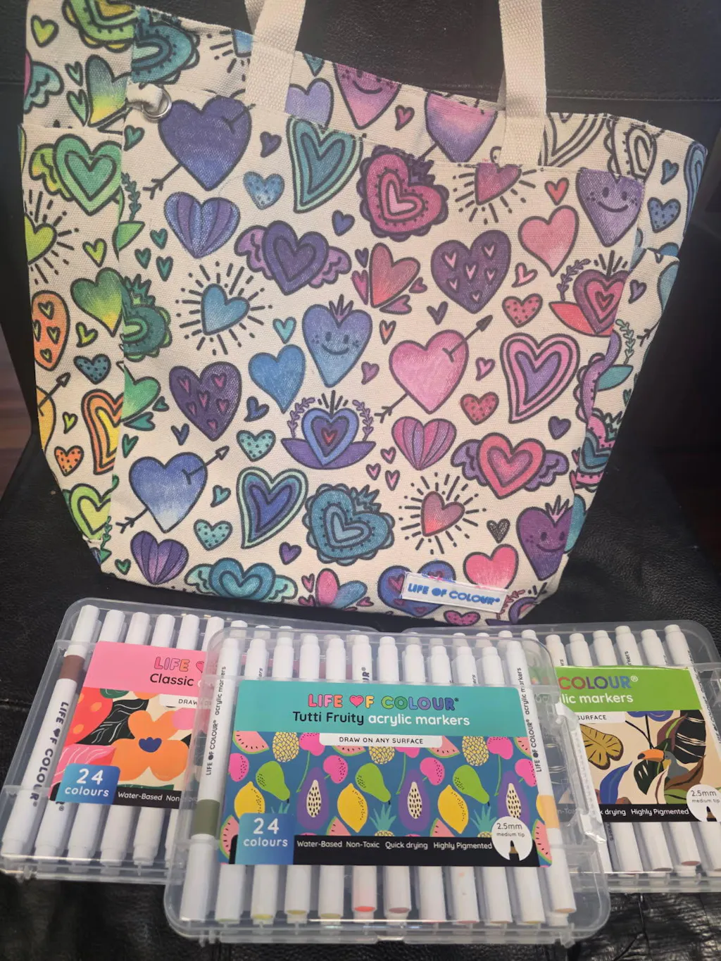 Our products are designed to work beautifully with Life of Colour pens, which are carefully tested for smooth application, vibrant colour, and ease of use. While you’re welcome to experiment, we recommend using our pens for the best overall creative experience.