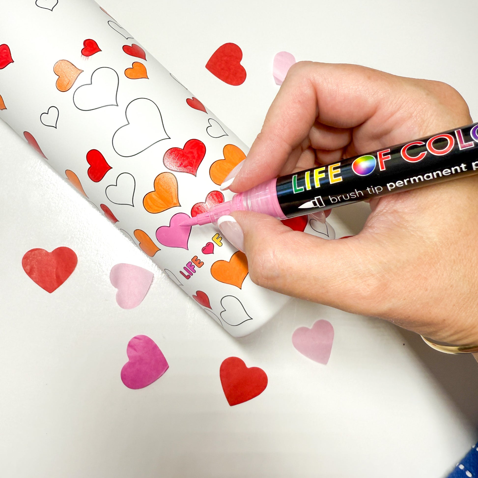 Our products are designed to work beautifully with Life of Colour pens, which are carefully tested for smooth application, vibrant colour, and ease of use. While you’re welcome to experiment, we recommend using our pens for the best overall creative experience.
