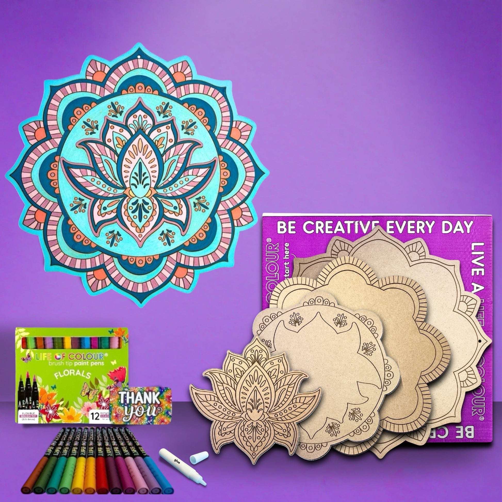 Premium Colours and Shine: Acrylic and chrome pens offer bold colors and shimmer that bring depth and luminosity to your mandala.