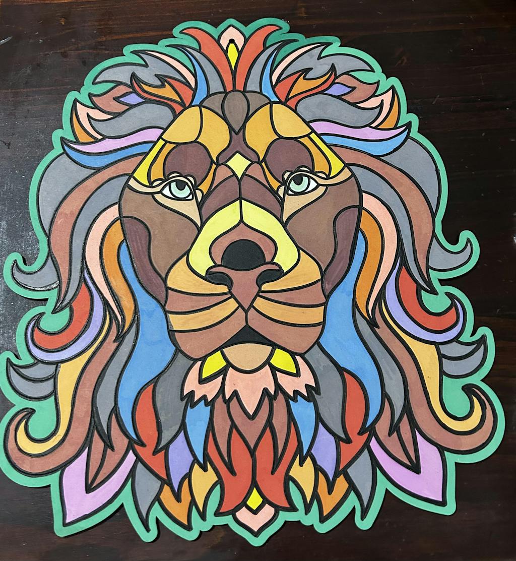 1 x Large Lion Board with engraved lines for guided coloring (40cm x 32cm, 3mm thick)