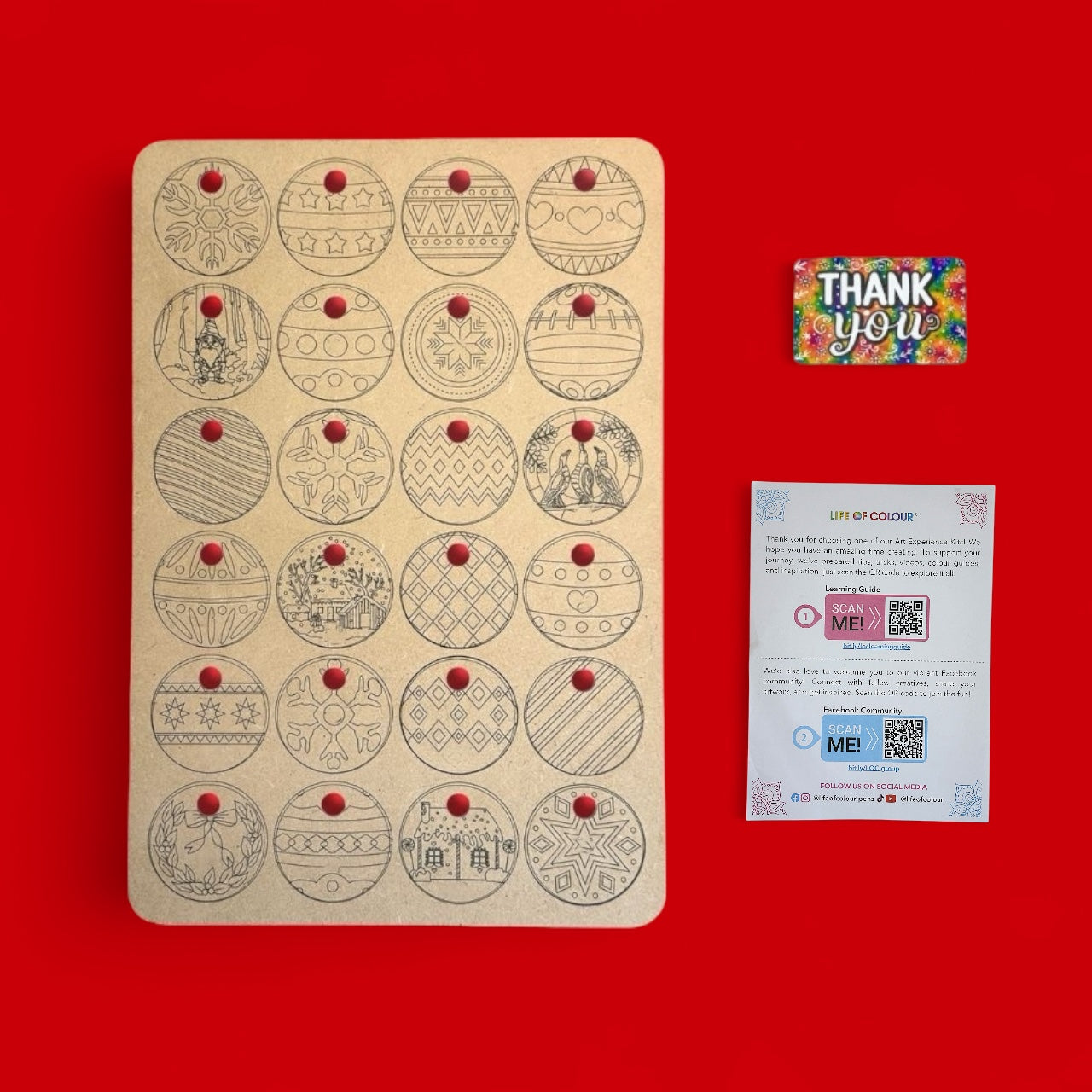 Featuring 24 pre-printed baubles, this kit is perfect for colouring and hanging your personalized designs. These baubles are crafted specifically to decorate your real tree. Add string, colour them in, and let your artistic flair shine bright this holiday season.