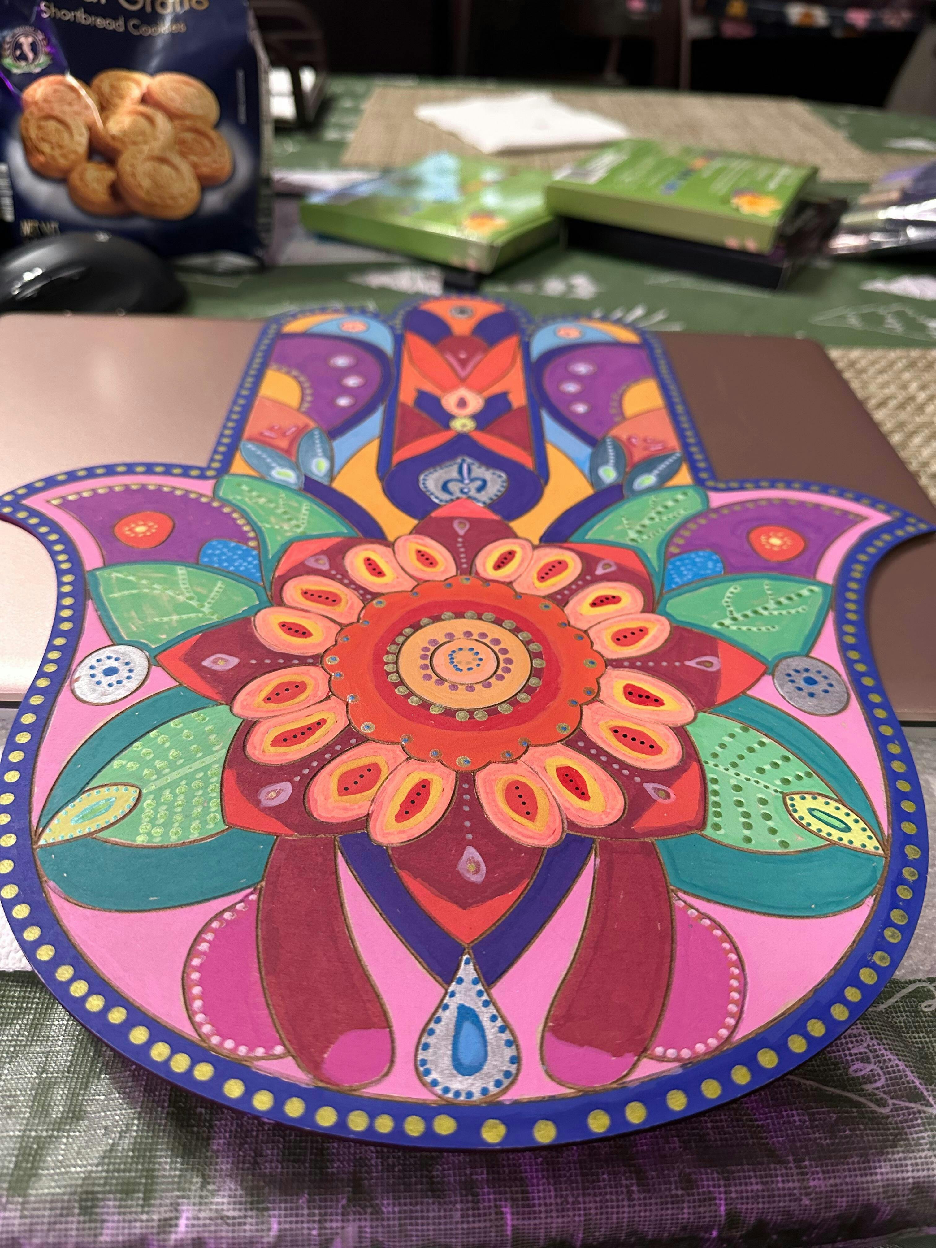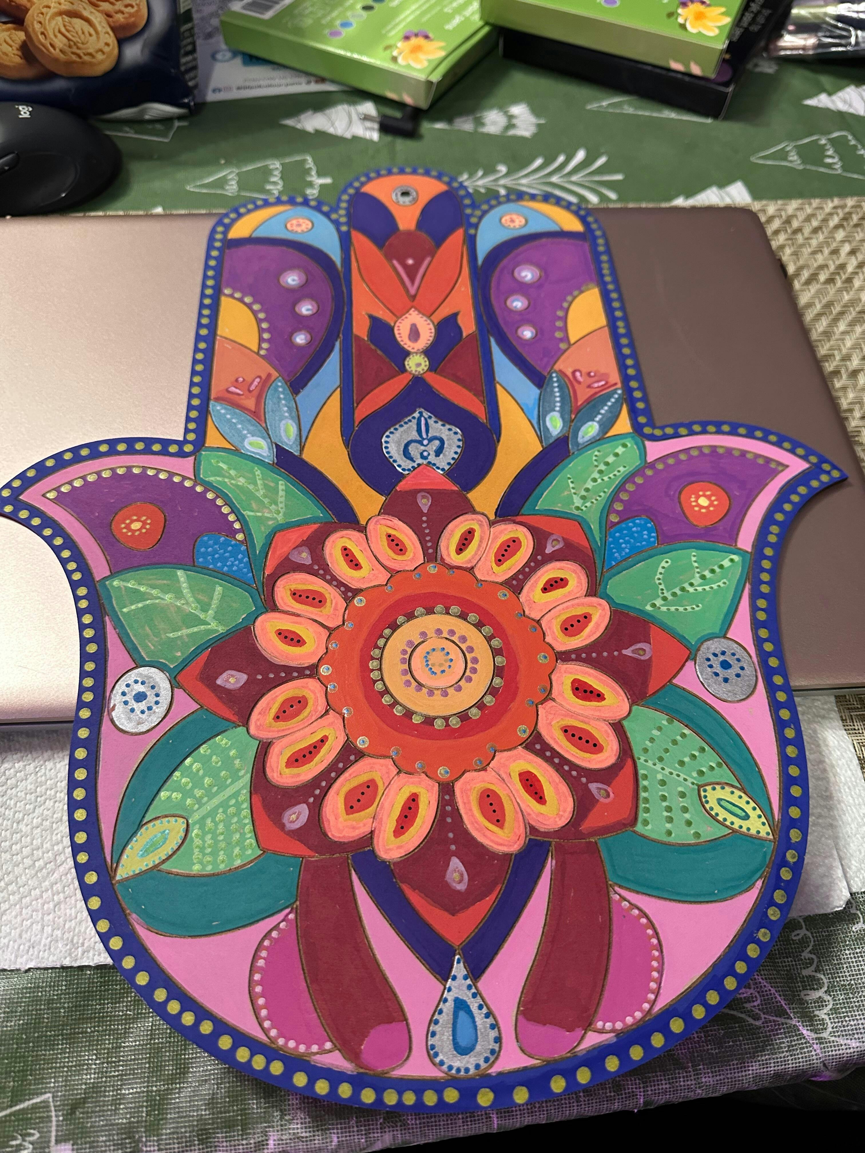 Showcase Your Work: The joy of creation culminates in sharing and displaying your artwork. Once your Hamsa is complete, it transforms into a meaningful piece of decor, ready to be admired and to emanate its protective and peaceful energy in your chosen space. Hang it in your home or office to not only enhance the ambiance but also to serve as a personal emblem of creativity and serenity.