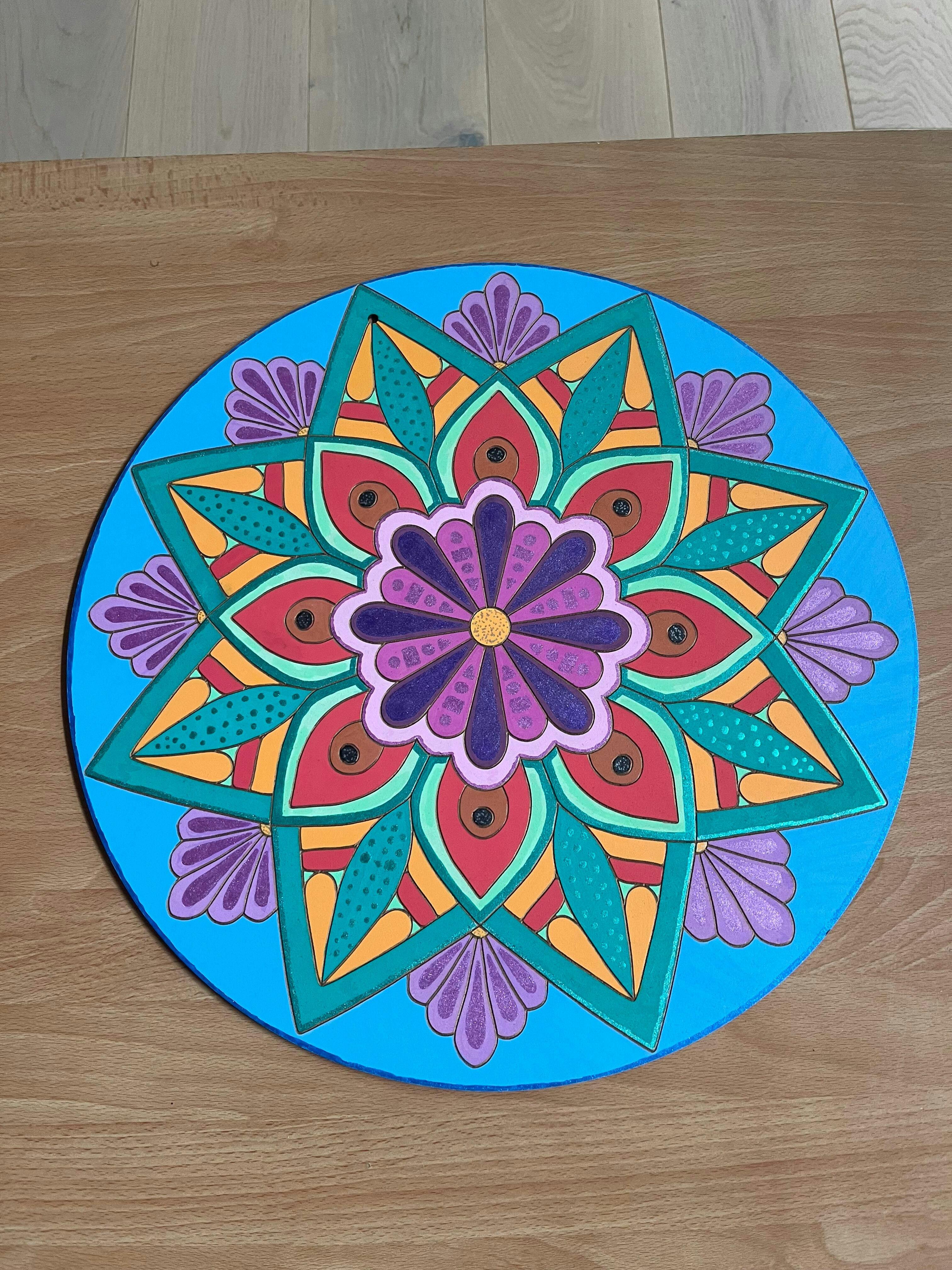 Showcase Your Work: The best part of the experience? Displaying your stunning creations for all to see. Once you've completed your mandala masterpiece, proudly hang it on your wall to inspire conversations and admiration. Whether it's your living room, bedroom, or workspace, your personalized mandala will infuse your surroundings with beauty and positivity.