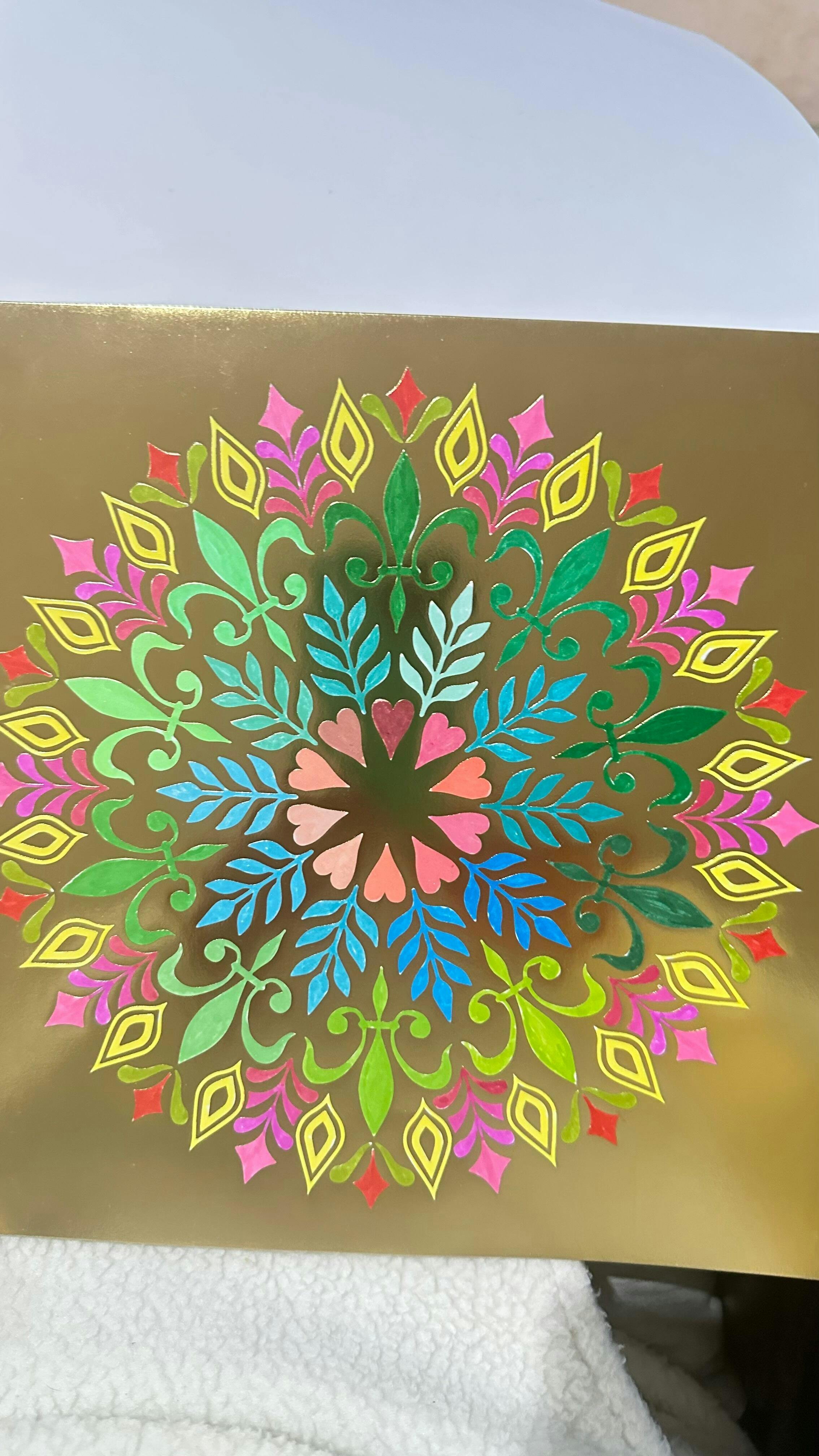 I love doing my Mandalas it’s relaxing and stimulating at the same time. I suffer with PTSD and sitting quietly with my colouring is great for my mental health only problem I have is I start and can’t stop and then I have to buy more.