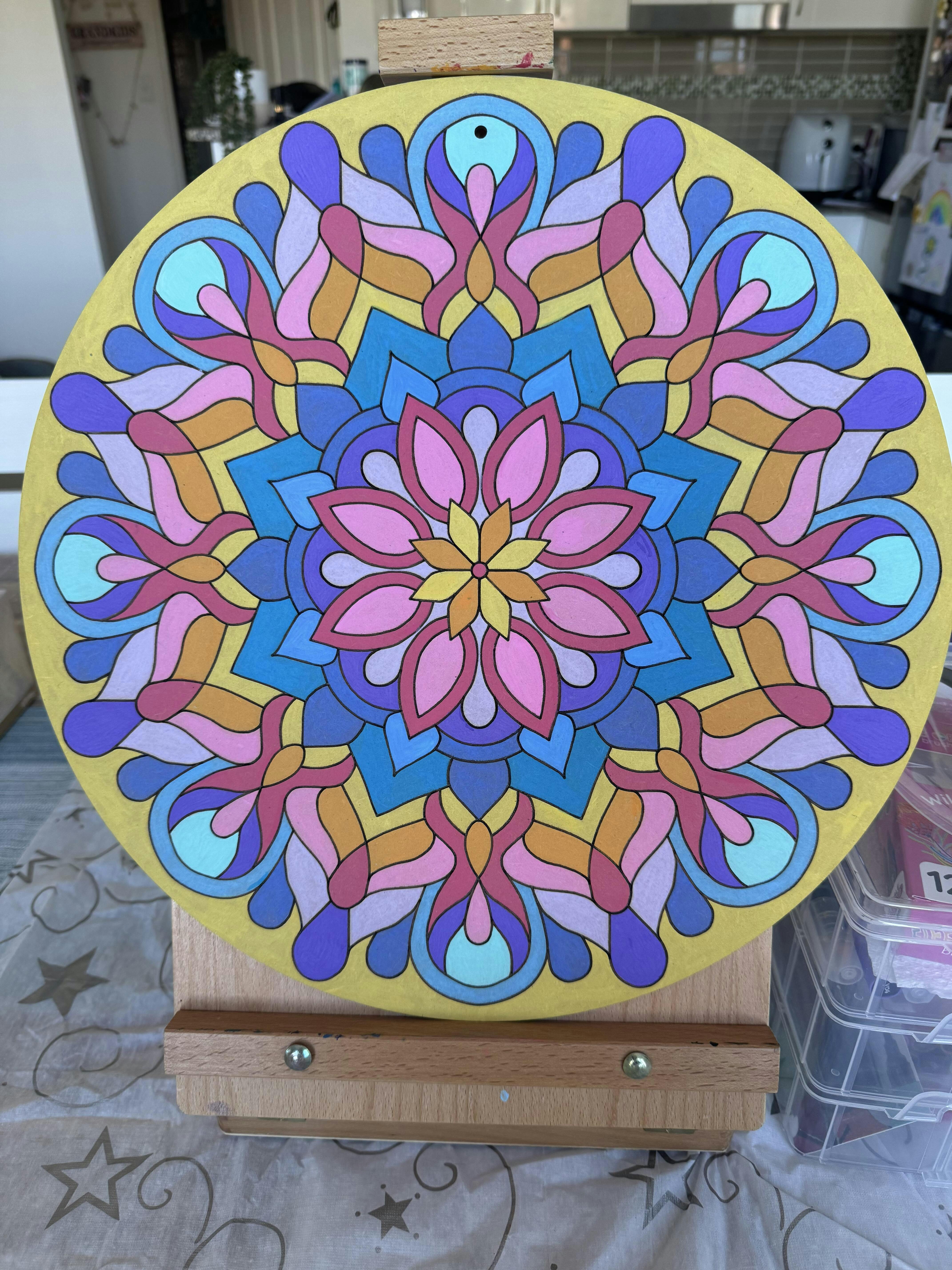 We are delighted to hear that you found our Mandala Painting Kit satisfying and enjoyed the process of selecting colours. It's always fun to change your mind and see how it turns out in the end. We are so glad that your completed mandalas have brightened up your kitchen corner.
