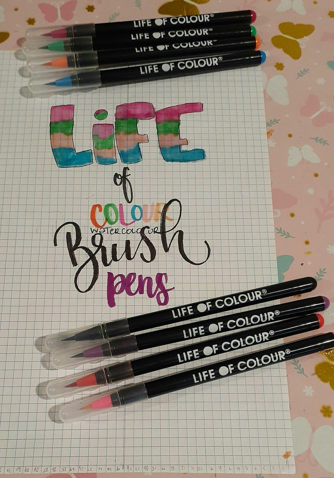 Each 20-colour set of Life of Colour watercolour brush pens comes with a water brush you can use for any wet technique, including the paint pens.