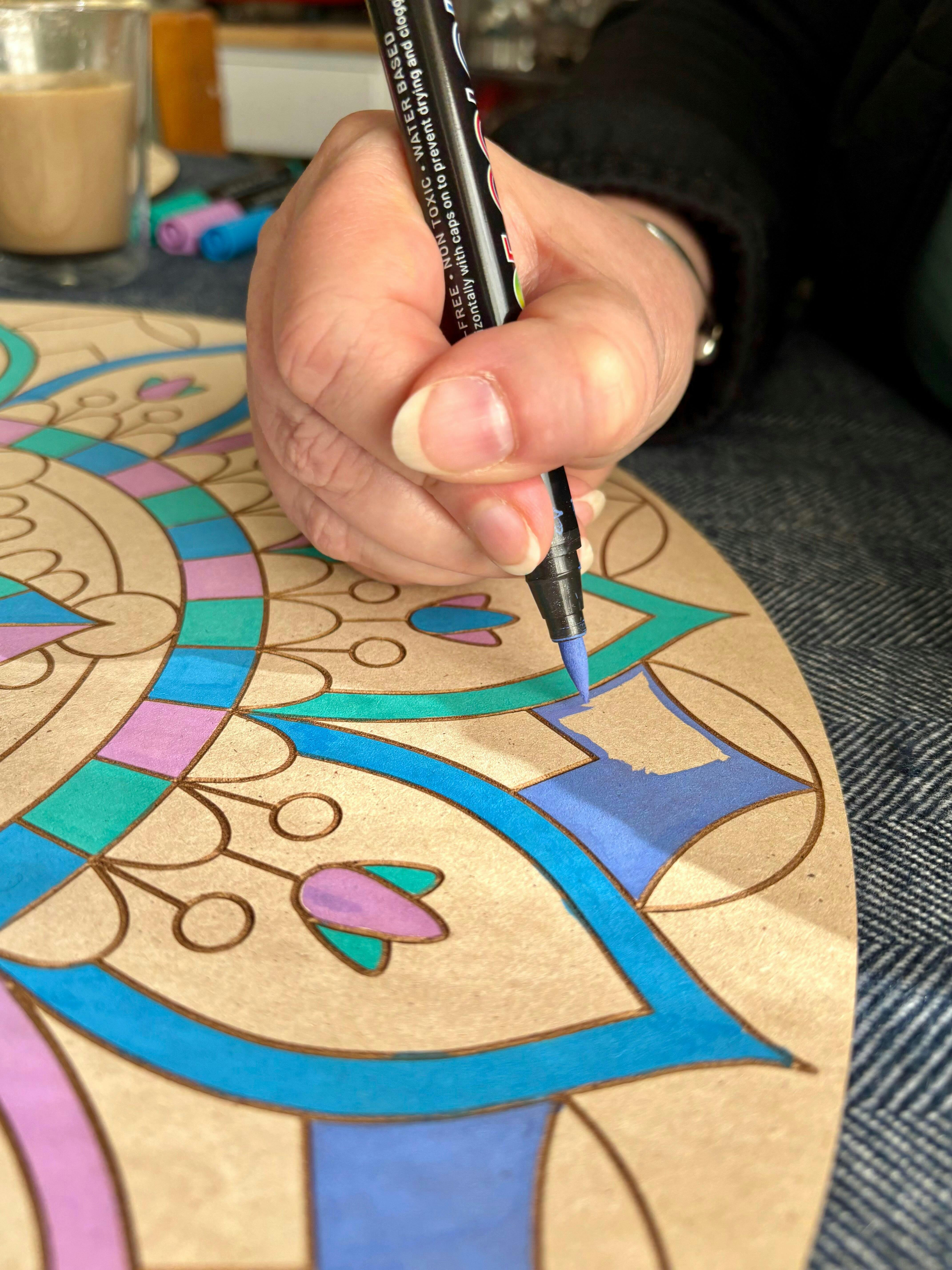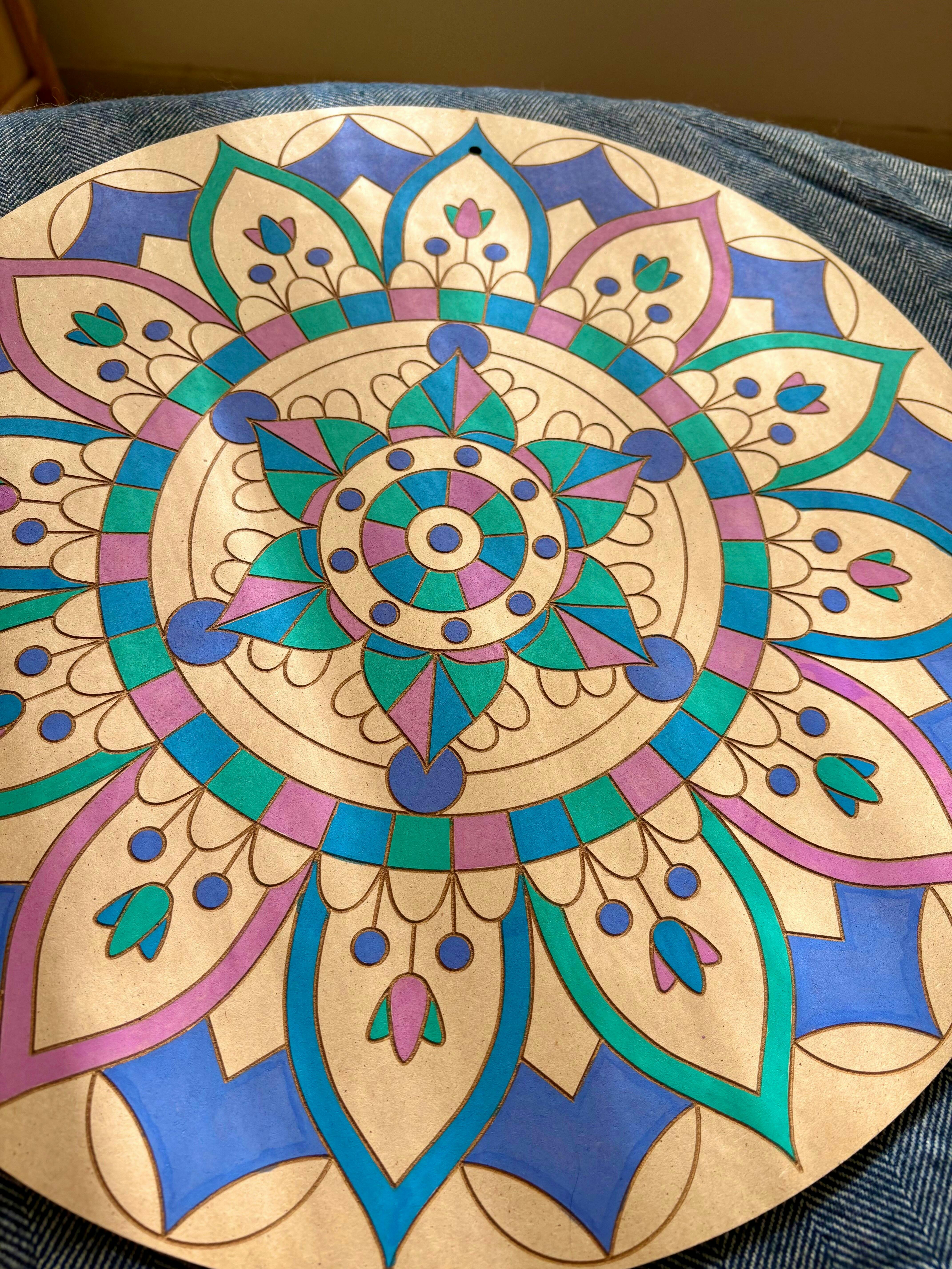 Showcase Your Work: The best part of the experience? Displaying your stunning creations for all to see. Once you've completed your mandala masterpiece, proudly hang it on your wall to inspire conversations and admiration. Whether it's your living room, bedroom, or workspace, your personalized mandala will infuse your surroundings with beauty and positivity.