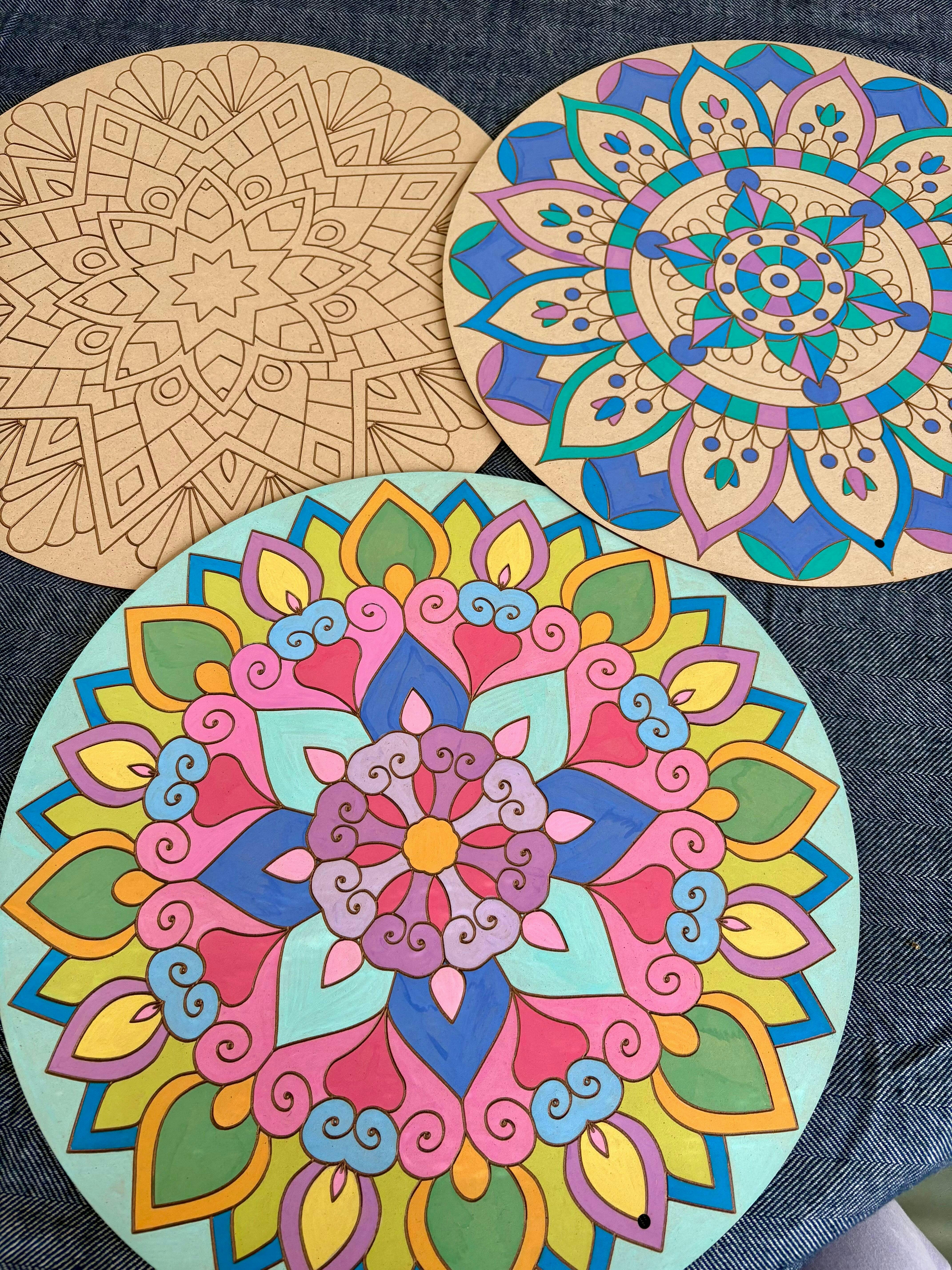 3 x 40cm Mandala Board (Australian MDF) with hanging hole (The Beach, the Phoenix and Botanica)