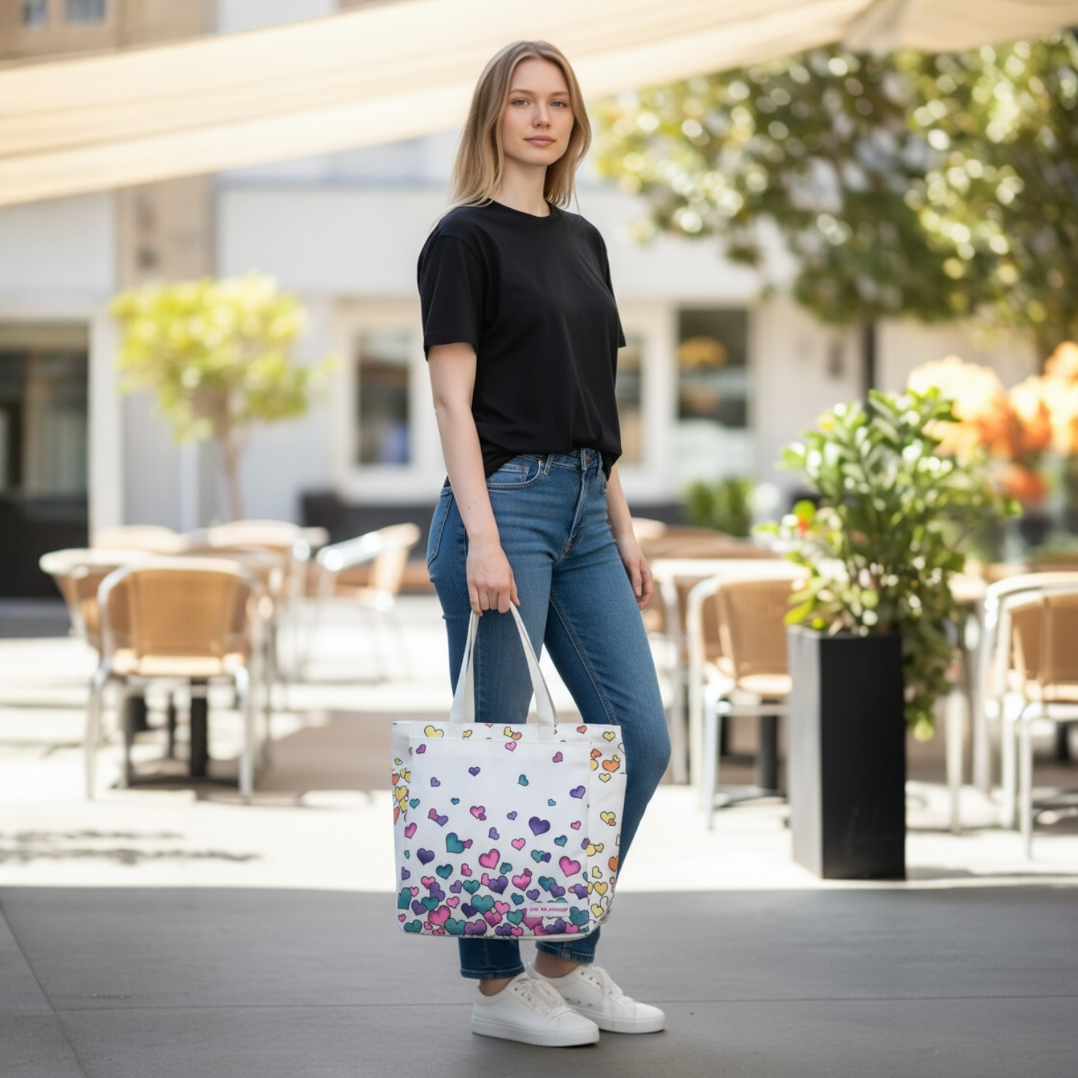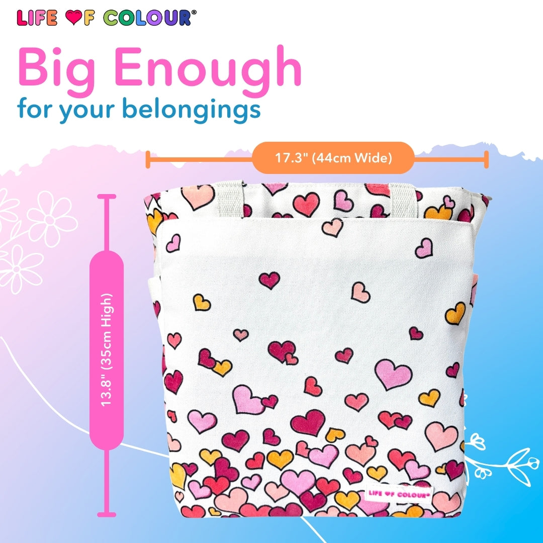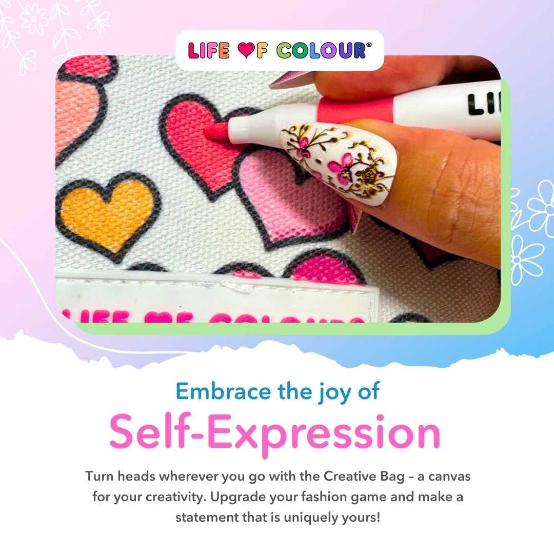 Made from high-quality, durable canvas, this tote is designed to be coloured, used, and loved. The falling hearts design is playful yet timeless, making it easy to personalise in your own style — whether that’s bold and bright or soft and subtle.