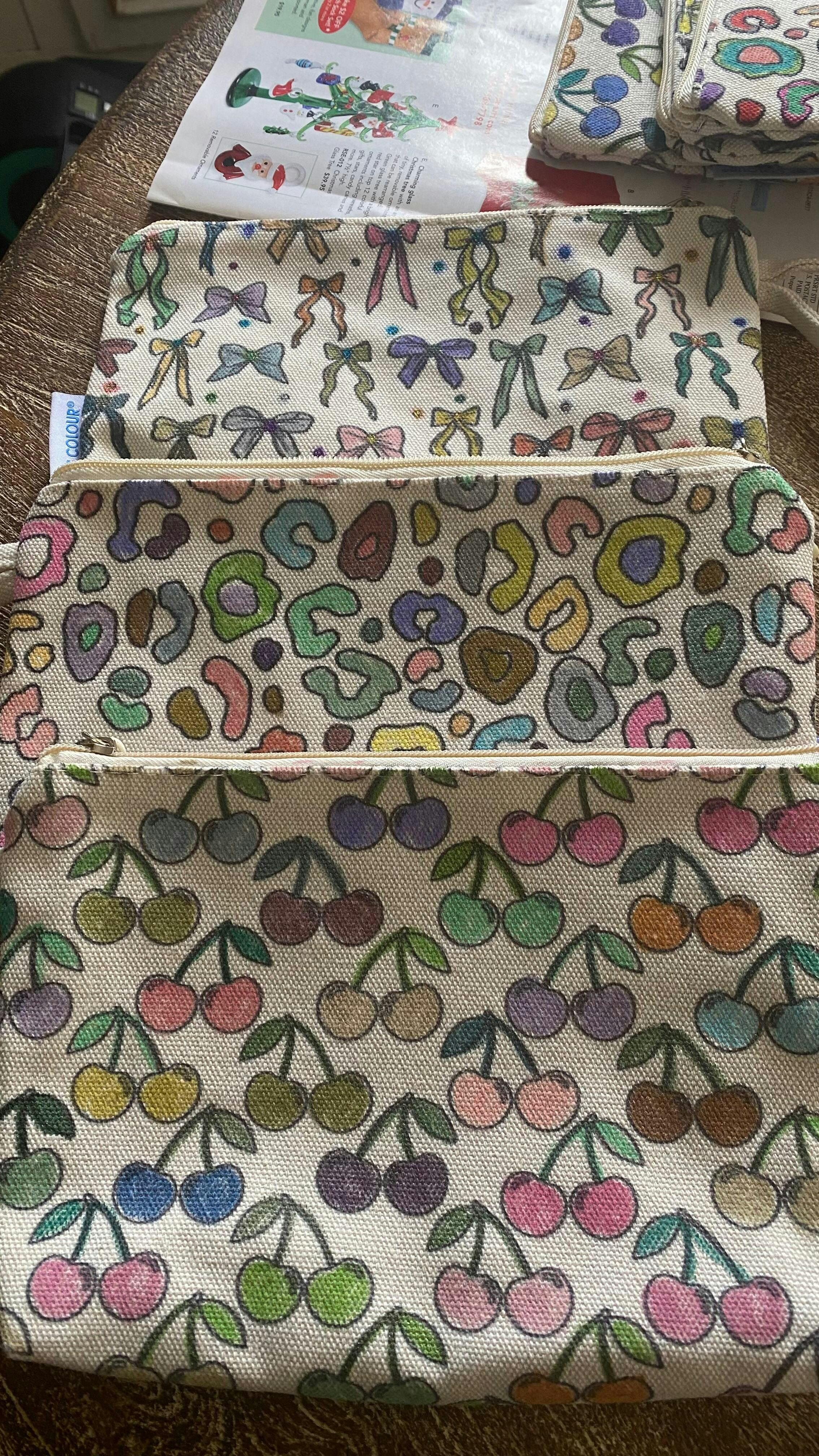 Get creative, stay organised, and look effortlessly cool – times three! This ultimate DIY bundle includes all three of our trendy essentials pouches – Cherries, Bows, and Leopard Print – each ready for you to customise with your own acrylic paint markers. (pens are not included in this bundle)