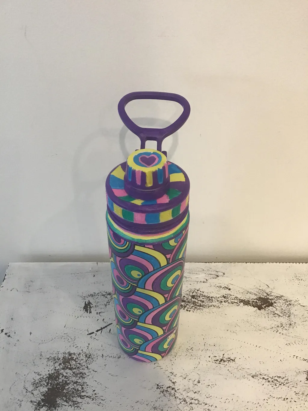 I loved painting this drinking bottle. The permanent paint pens went on smoothly. Colouring on a curved surface was the biggest learning curve but just added to the satisfaction when finished.