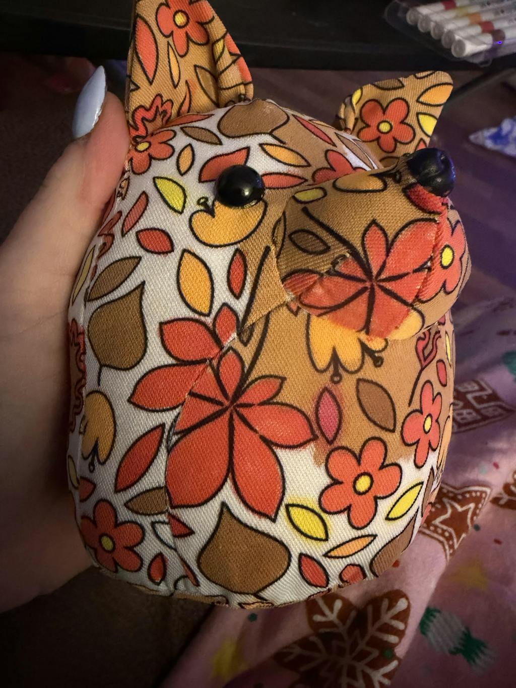 1 x Flora the Fox plush toy with leafy and floral doodle designs