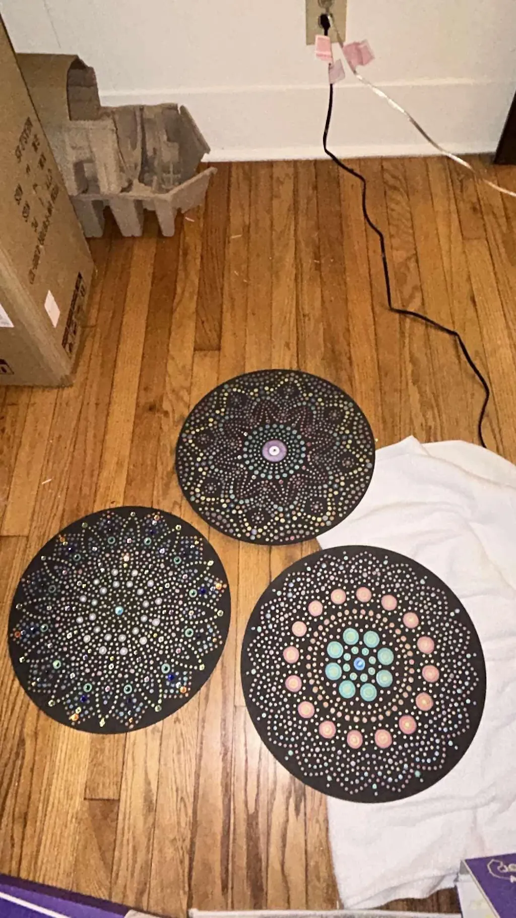 3 large 40cm black mandala boards (Draco, Orion, and Cygnus) with detailed dot engravings