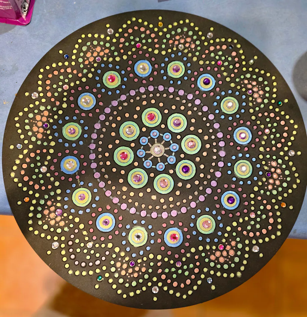 Thank you for your review! We're so happy to hear that you love our Dot Mandala Painting Kit and that you had a great time creating with it. We love the added touch of the stones - it sounds like your artwork turned out beautifully. Thank you for choosing Life of Colour and happy creating!