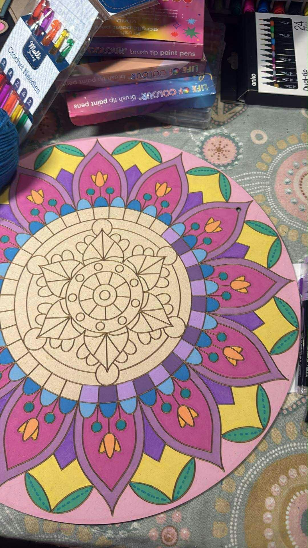Thank you for taking the time to leave us a review! We are thrilled to hear that you are enjoying our Mega Mandala Painting Kit. It's great to know that it has become a fun activity to do with friends while listening to music. We appreciate your support and hope you continue to have a great time colouring with our mandalas! Happy painting!