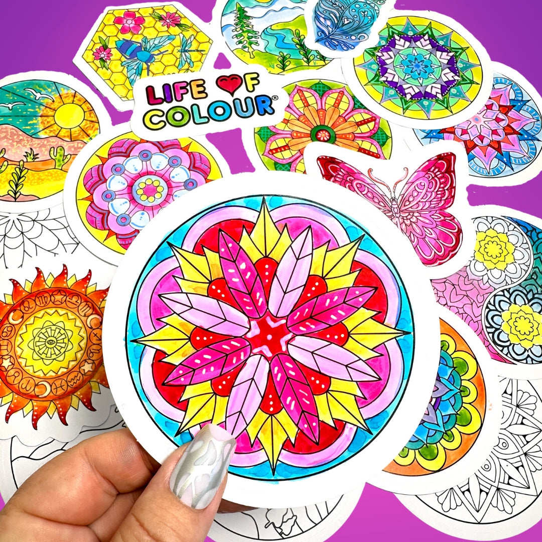 Bring mindful creativity into your everyday with our Mandala Sticker Pack, featuring a beautiful mix of our most loved designs from the Mandala, Mystical, and Mosaic collections. Each sticker is a small, calming canvas filled with intricate patterns and meaningful details—perfect for slowing down, colouring in, and adding a touch of art wherever you go.
