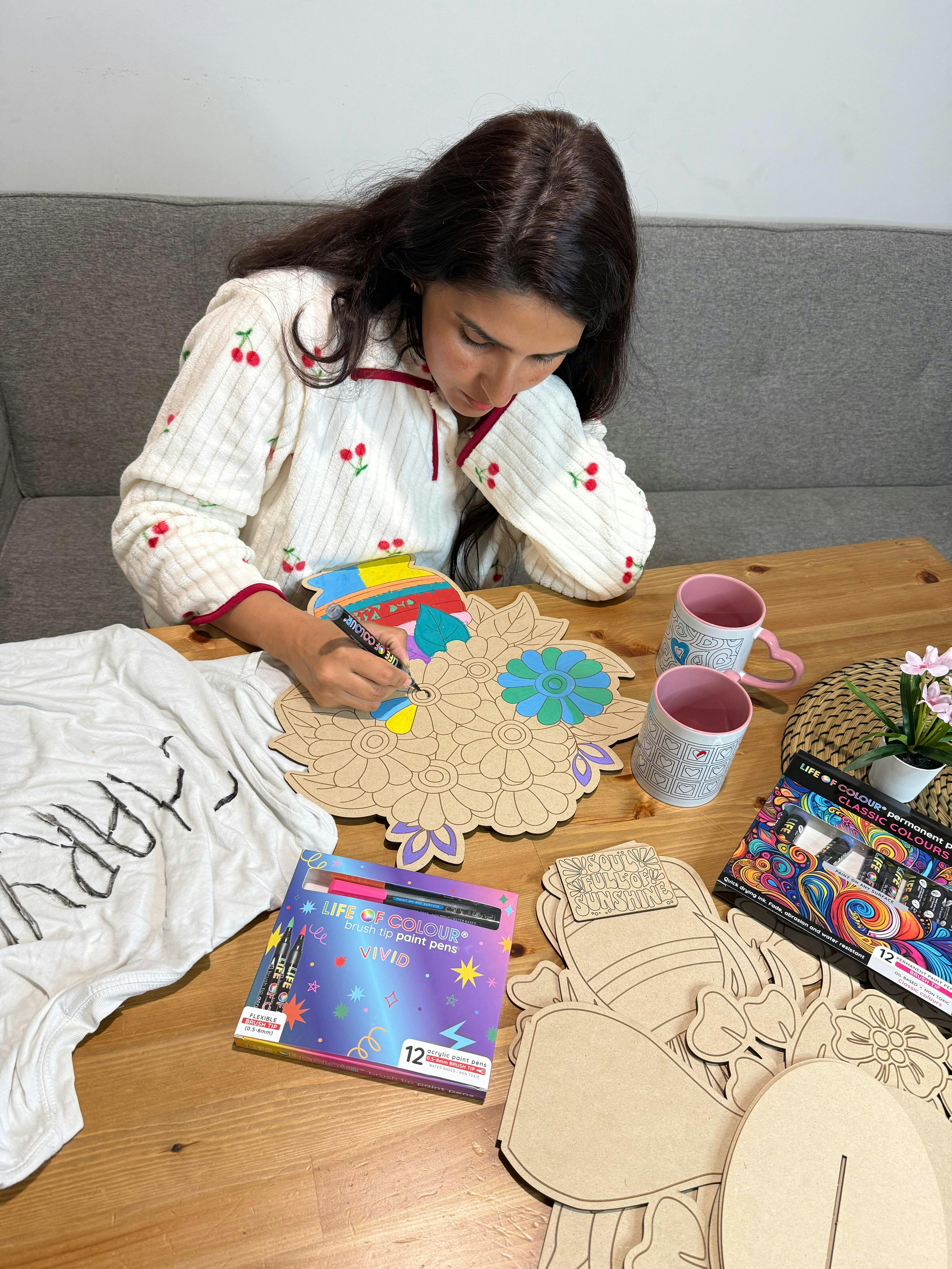 With a demanding work schedule and constant pressure, I needed something calming yet fulfilling—and this was exactly what I was looking for. The MDF cutout was the perfect blank canvas, and the acrylic pens made colouring so easy—smooth flow, vibrant shades, and absolutely no messy cleanup.