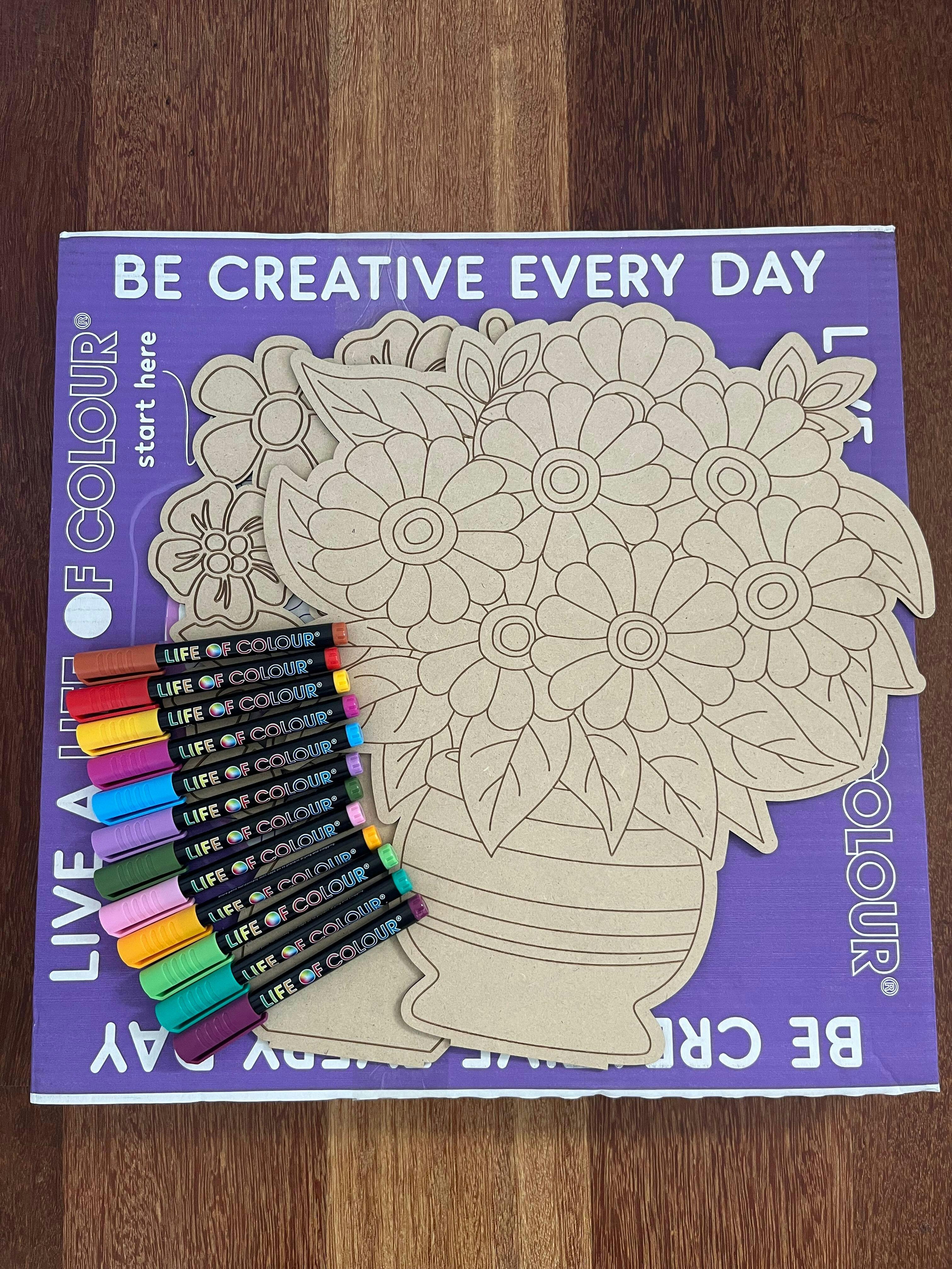I recently had the joy of using Life of Colour’s acrylic paint pens to bring an MDF flower pot cutout to life, and I can’t stop smiling every time I see it!