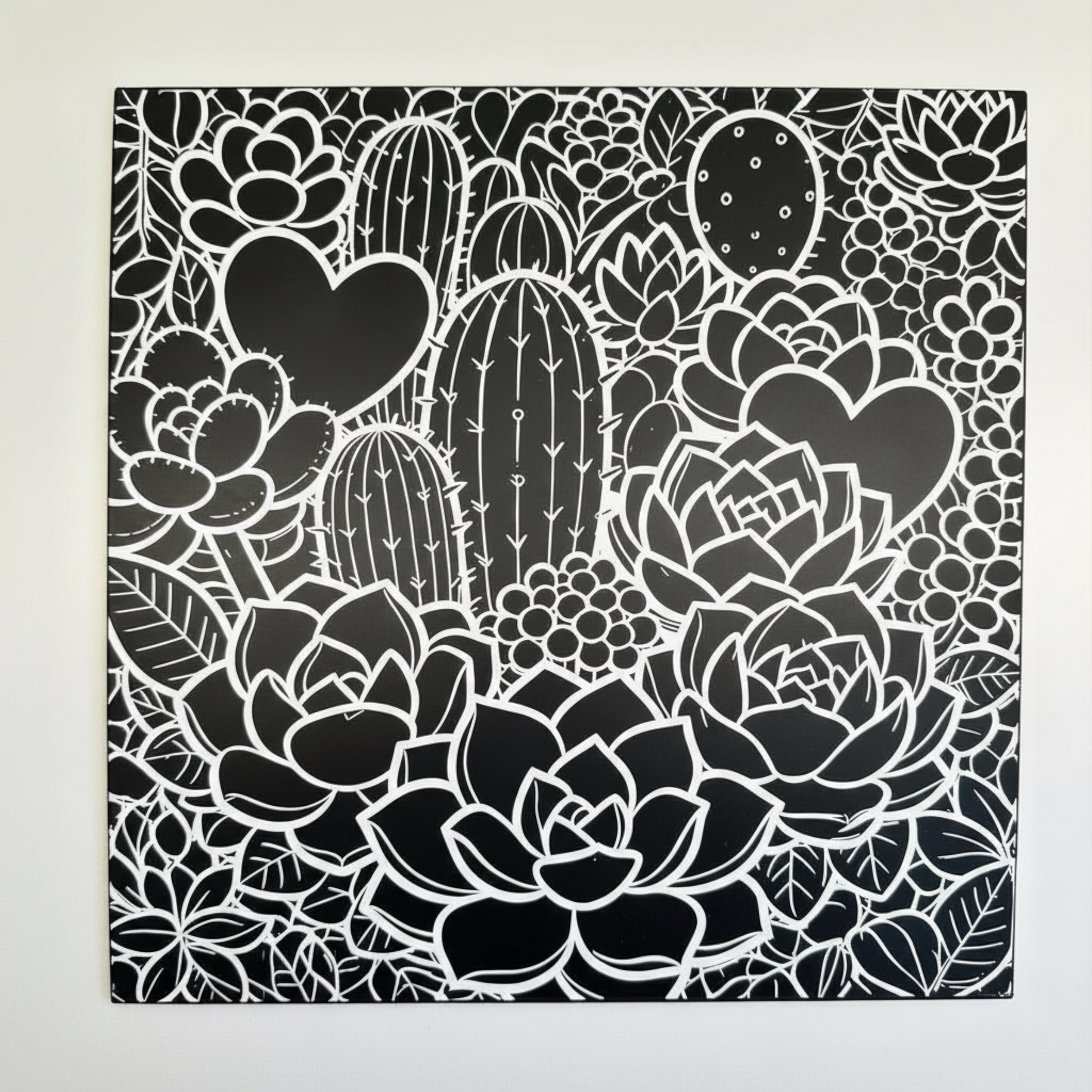 1 x Metal Poster (32cm x 32cm) with a pre-printed Cactus design