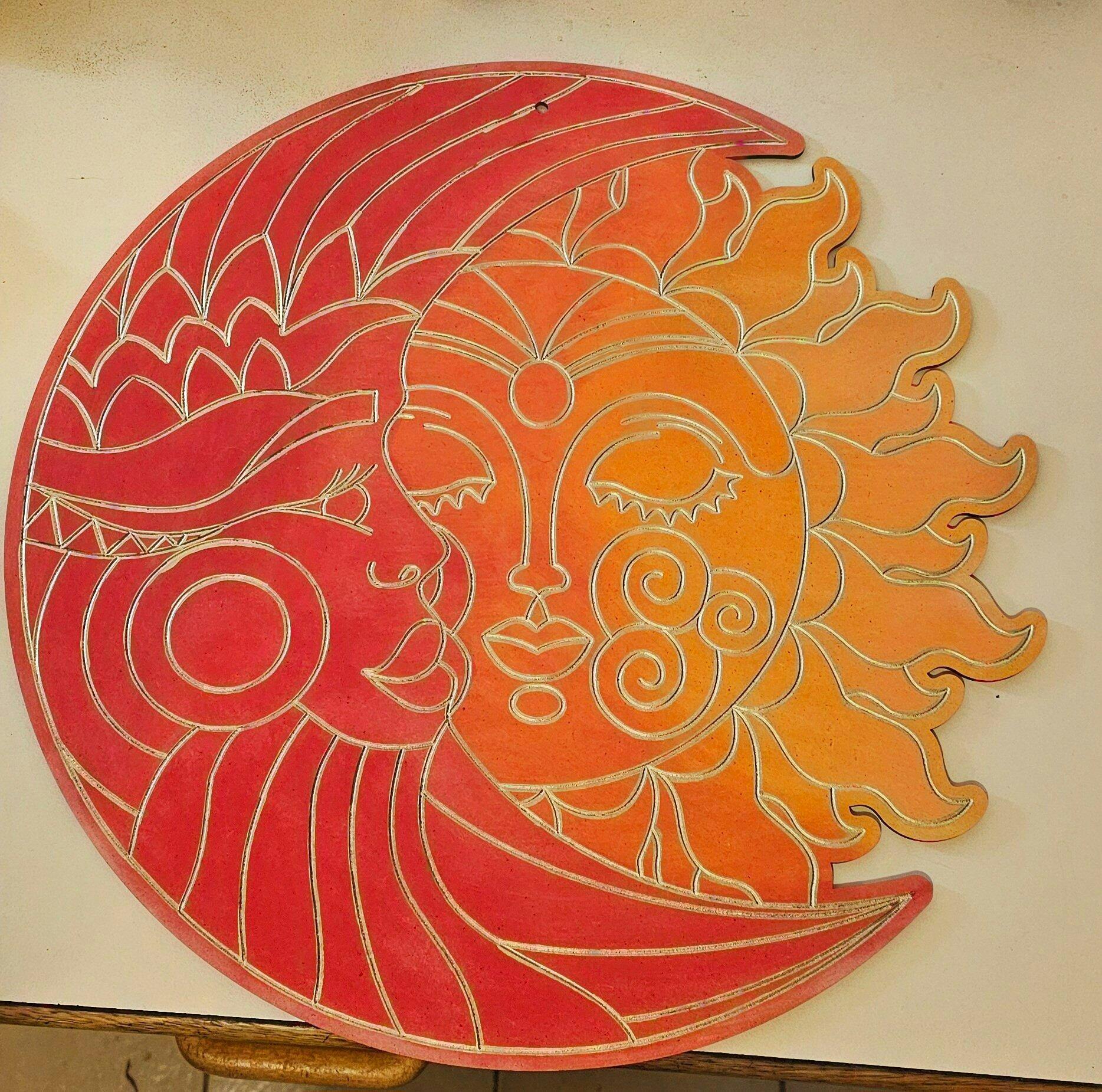 1 x Large Sun and Moon Board with engraved lines for guided colouring (40cm diameter, 3mm thick)